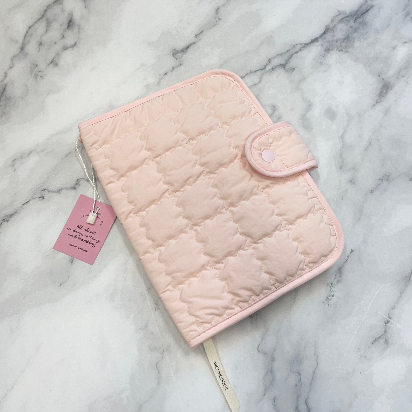 This book cover is made from a fabric that features natural shirring using elastic thread for quilting, unlike regular quilting.